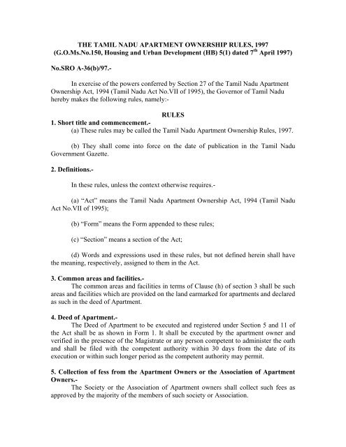 The Tamil Nadu Apartment Ownership Rules 1997 Vellore District