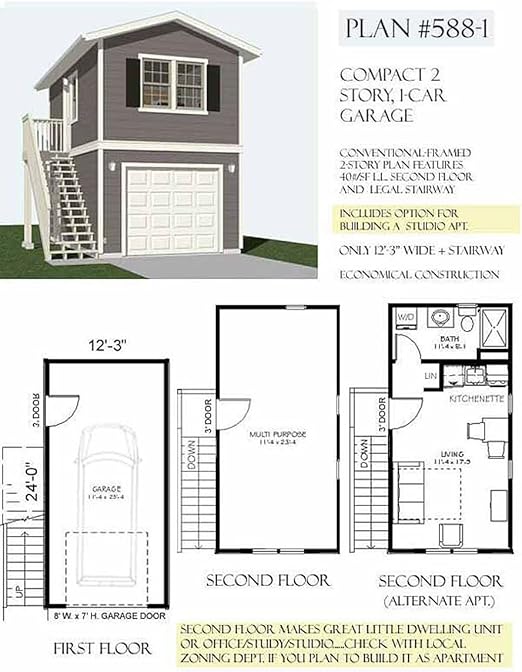 Garage Plans Two Story 1 Car Garage Plan 588 1 12 3 X 24